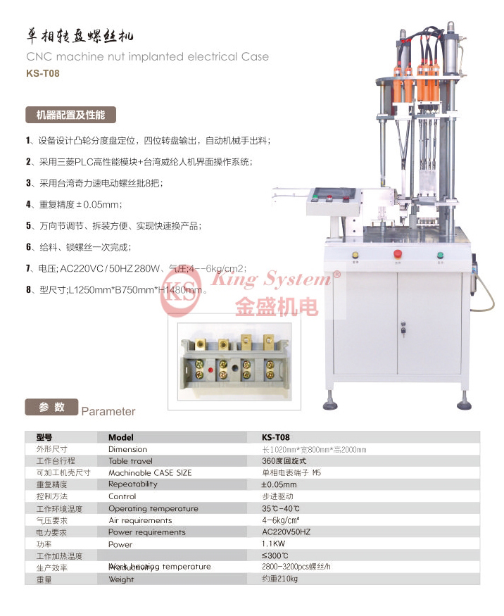 產品名稱:KS-T08單相轉盤螺絲機 產品編號:171638-595 更新時間:2015.06.24 出品單位:螺母熱熔機,螺母機,埋釘機,自動螺母熱熔機,自動埋釘機,自動螺母植入機-深圳市金盛機電科技有限公司 瀏覽次數: |