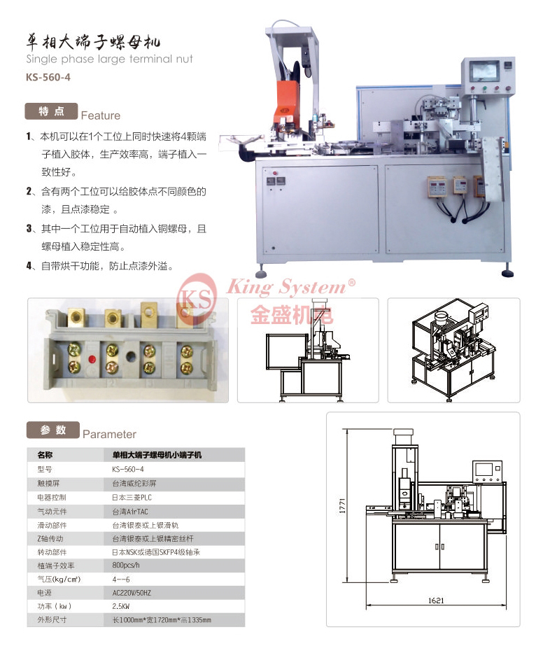 產品名稱:單相大端子螺母機KS-560-4 產品編號:172057-746 更新時間:2015.06.24 出品單位:螺母熱熔機,螺母機,埋釘機,自動螺母熱熔機,自動埋釘機,自動螺母植入機-深圳市金盛機電科技有限公司 瀏覽次數: |